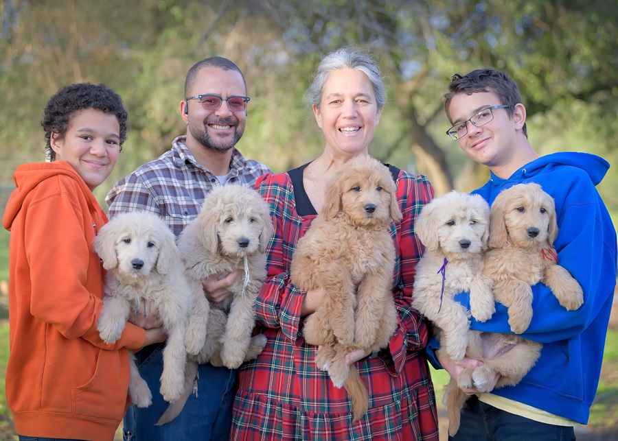 I thought you would enjoy seeing these pictures of our medium sized Goldendoodles grown up.